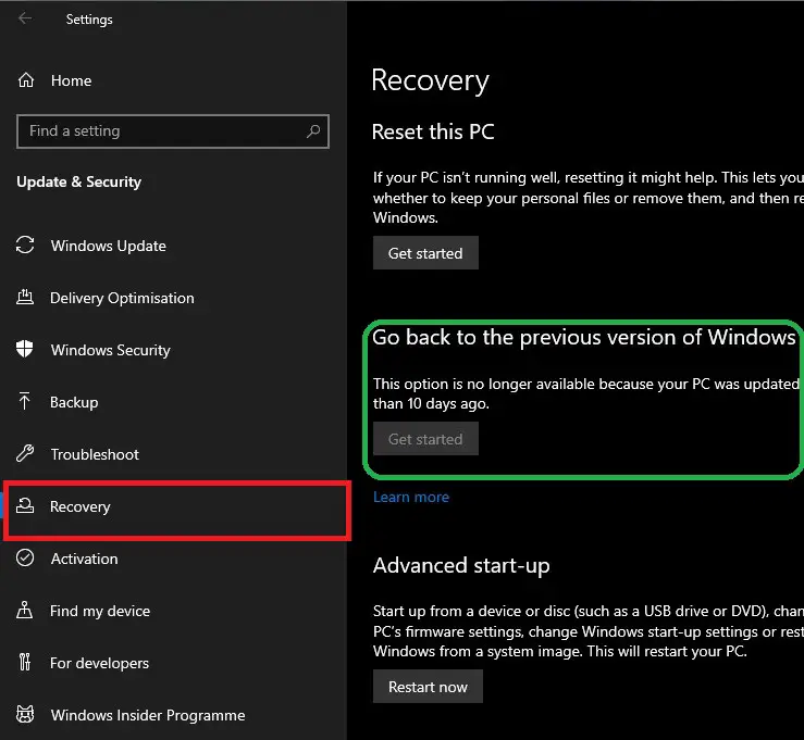 Rolling back to Windows 10 is only possible within ten days of installing Windows 11, after which your previous system data is permanently deleted and cannot be recovered. Consequently, consumers who have been using Windows 11 for a few weeks may discover that Windows 11 has returned to its previous state of not operating. But the steps given below will save your day: